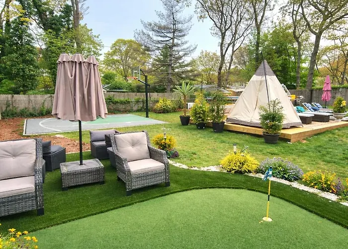 Pendant leur séjour à cette villa Paradise Citadel, Sauna, Htd Pool Hottub Golf Basketball Mastic, les clients peuvent s'adonner à un mini-golf et un billard ou visiter le mémorial et les jardins internationaux TWA Flight 800, situé à 6 km de. Proposant un jacuzzi et un bain chaud, cette villa de 5 chambres est à moins de 10 minutes en voiture de William Floyd Estate.